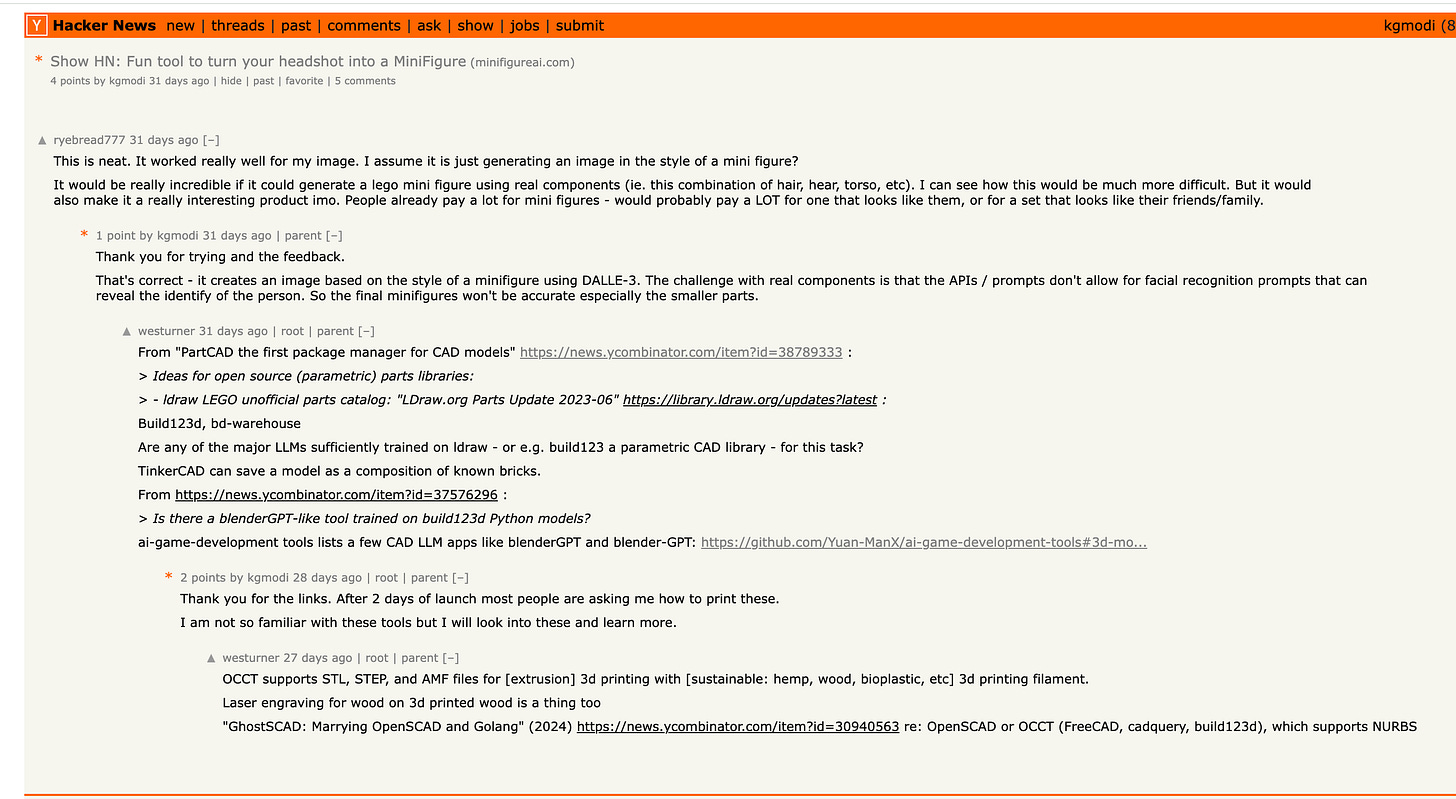 Last month, I launched MiniFigureAI.com. It turns your headshots into MiniFigures. Marketing is challenging when you don't have a large audience or distribution channels, so I was amazed by the launch response. In this post, I share the list of events that helped me find users for the app. I want to share this with others who may have similar challenges.